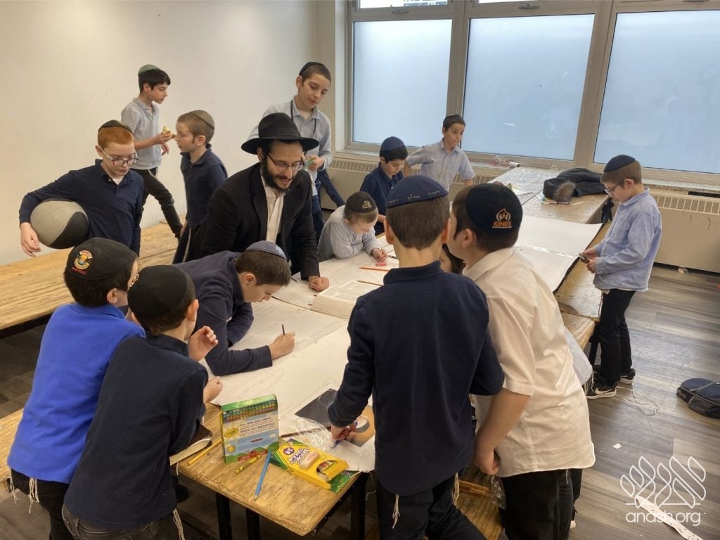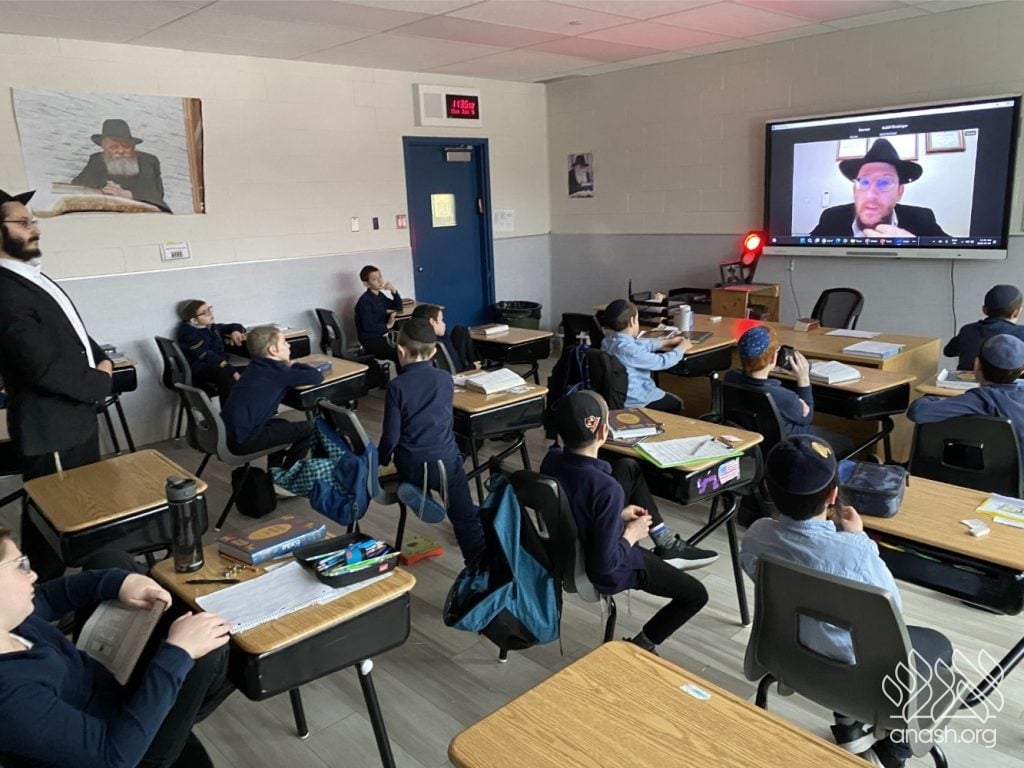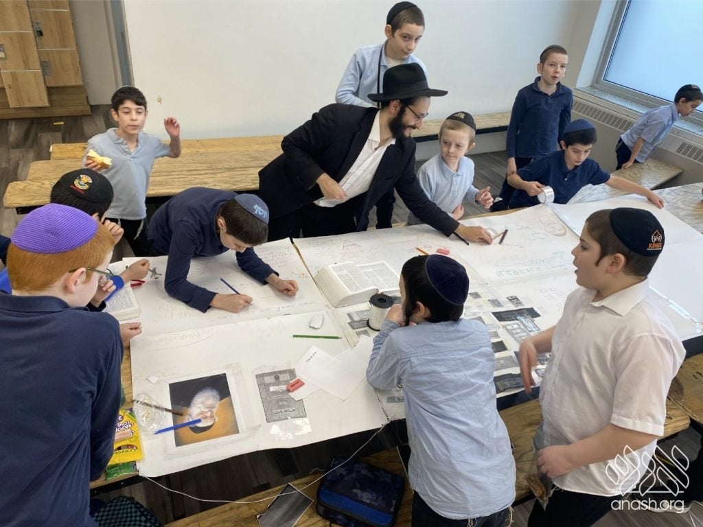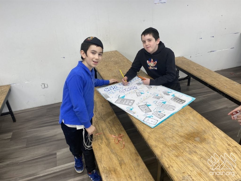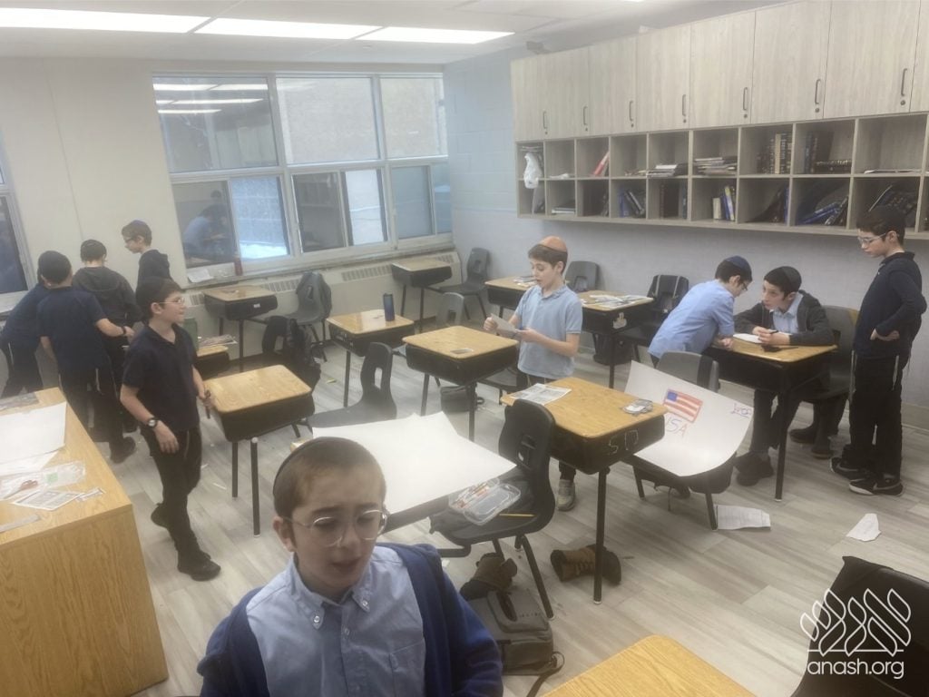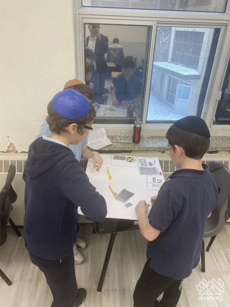 The excitement went far beyond paper and glue. Throughout these two weeks, the boys “traveled” the world virtually, joining exclusive live Zoom Farbrengens with Shluchim from the USA, Rome, Morocco, Holland, France, Austria, Hungary, Mexico, and England. These Shluchim shared fascinating stories about printing the Tanya in their respective countries, giving the students a deeper appreciation for the global reach of Chassidus.