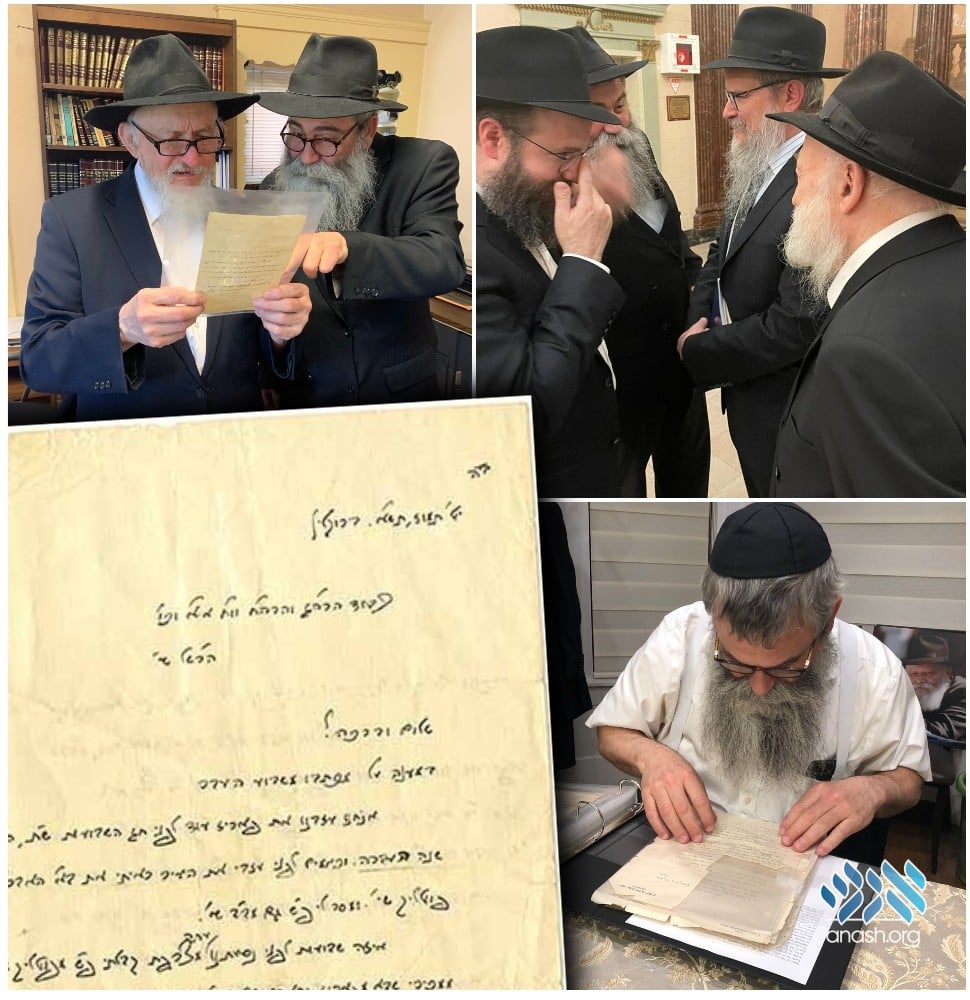 Representatives of the Central Library of Agudas Chabad and the Kehot Publication Society, visited the home of the funeral director and discovered that the letter was part of a collection of great historic value, and graciously received it from the funeral director. Rushing back to Crown Heights, Brooklyn, they reported the successful find to the Rebbe’s secretary and executor of his will, Rabbi Yehuda Krinsky, who in the past had the merit of rescuing various collections of this nature for the Rebbe and the library.