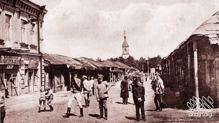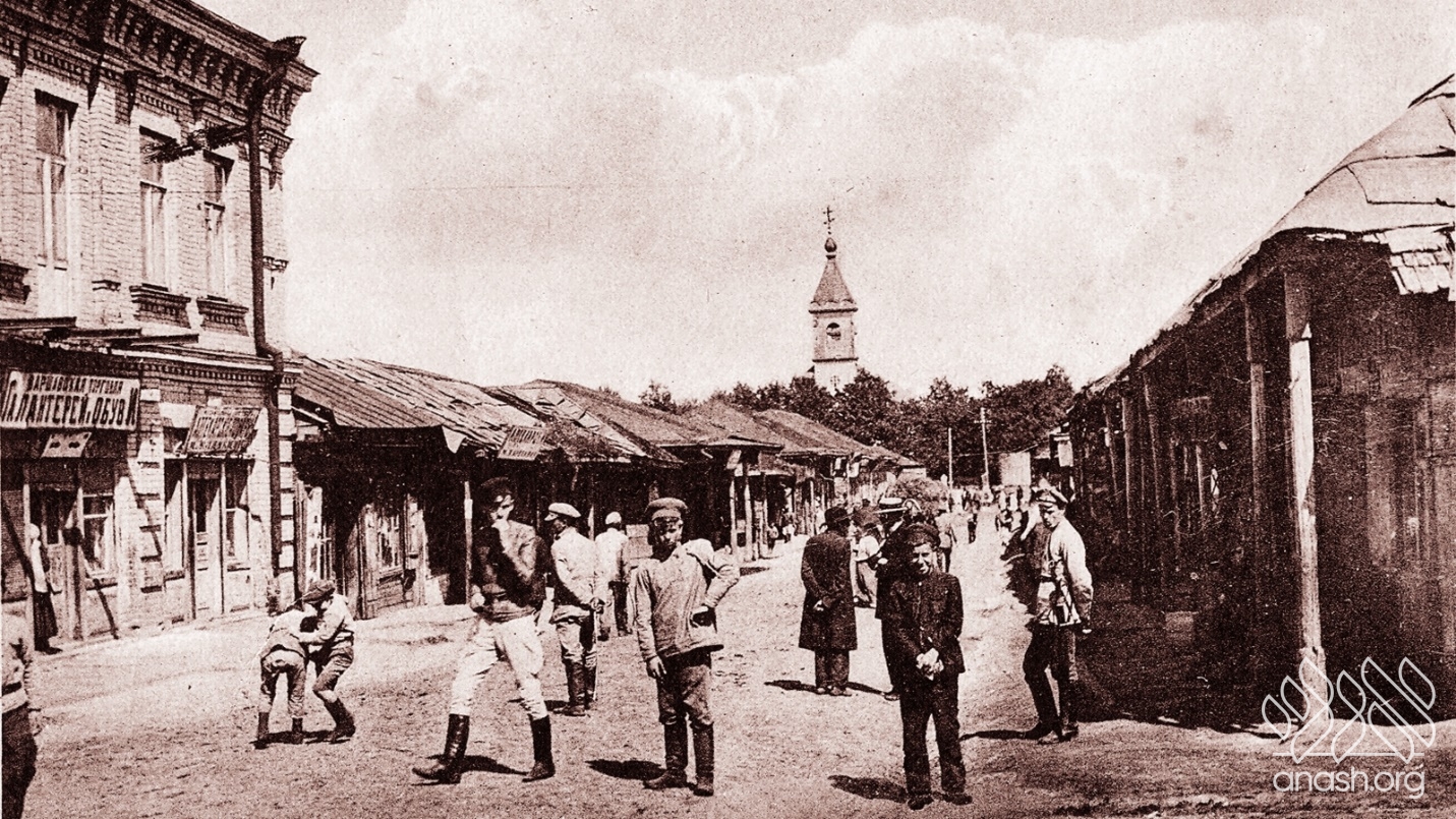 Pinye-Moshe’s, or Pinye-Meishke-dem rov’s, was my friend in Rechitsa. His father, Meishke-dem rov’s, ran a textile store at the market. The Russian sign said that the store belonged to a “Pot. Potsh. Grazhd.” (“Potomstveni potsotni grazhdanin”—“hereditary honorary citizen”), a title which, as I was told, had been given by the great R. Shneur Zalman of Liadi (the Baal HaTanya) for his opposition to Napoleon. He fought the French invader not out of Russian patriotism, but out of fear of the emancipation, which would cause the Jews to grow wealthy and forget G‑d’s Torah.