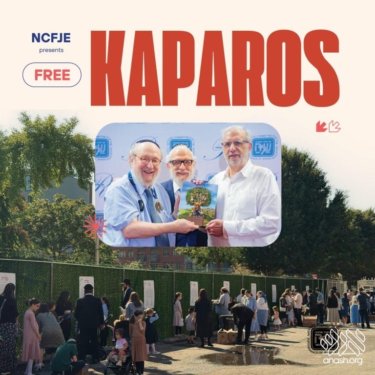 Kaparos continues Tuesday night at 8 p.m. in the parking lot of Beis Rivkah Crown St. with Shchita. People doing Kaparos on money can send their contributions to NCFJE to distribute at NCFJEkaparos.com