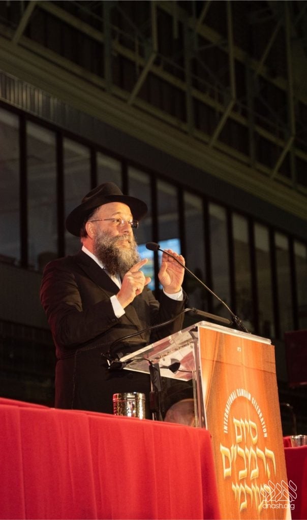 Rabbi Yosef Yeshaya Braun, a member of the Crown Heights Beis Din, noted that the Siyum celebrates tens of thousands of Jews literally completing the entire Torah and becoming unified with Hashem in a “wondrous union.” Through the study of all 613 mitzvos, the Jew himself becomes whole, and Rabbi Braun called on everyone to make Rambam study an inseparable part of daily life.