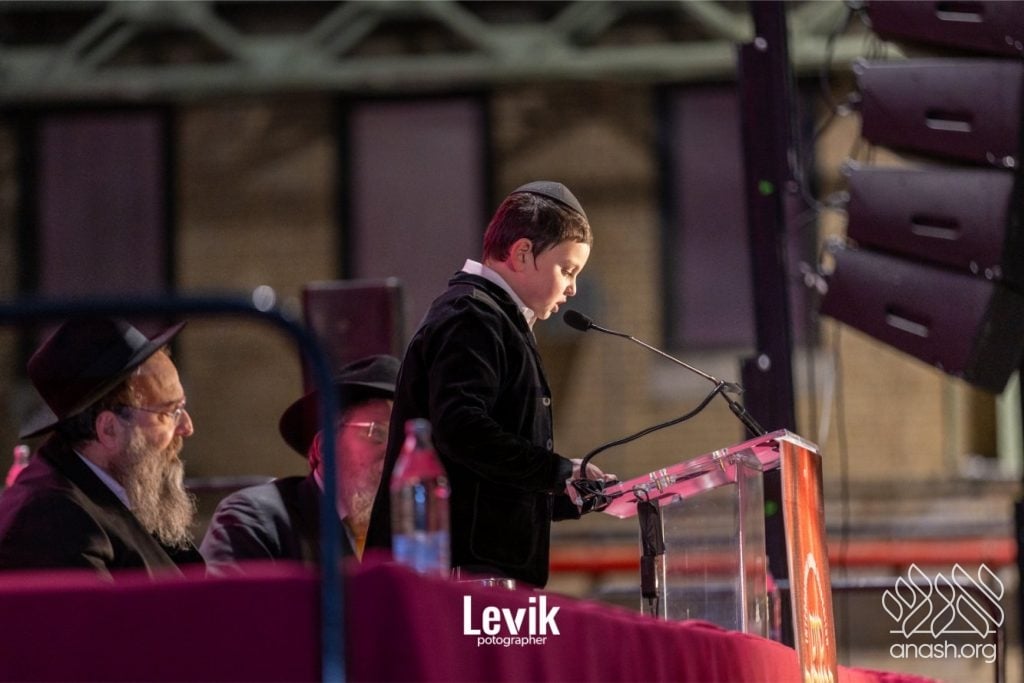 A young fifth-grade student, Menachem Mendel Roitblat, led the Siyum on Sefer HaMitzvos in memory of his grandfather, Rabbi Shneur Zalman Wilshansky AH, Rosh Yeshiva of Morristown. He reflected on lessons from the final mitzvah, emphasizing the ability to elevate every corner of the world and the need for self-sacrifice in refining the world. He spoke about the first mitzvah of the new cycle—the obligation to believe in the Creator—and the power of the triple Siyum to inspire renewed dedication to spreading Torah and hastening the coming of Moshiach.