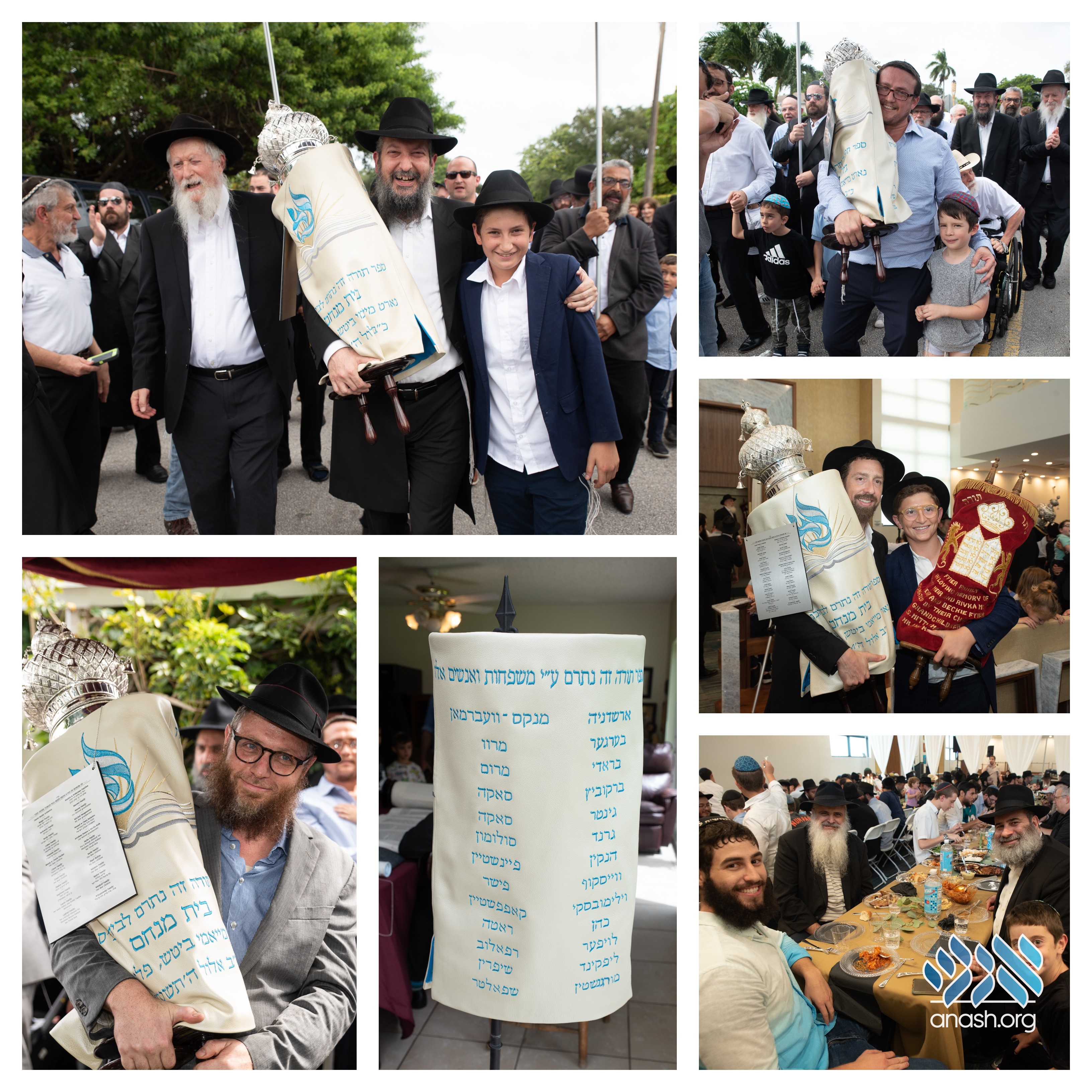 A year after a 3:00 AM pact was made, the Bais Menachem community of North Miami Beach was dancing with a new Sefer Torah.