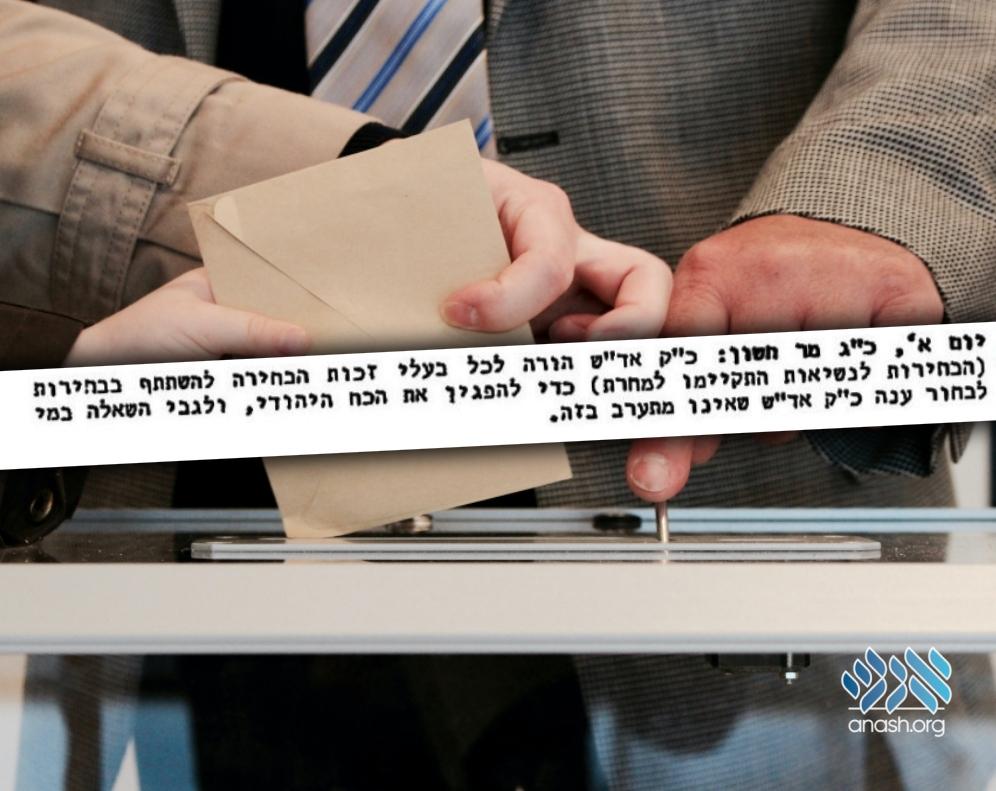 In 5741, on the day before the presidential elections, the Rebbe sent out a surprising message: Everyone who had the right, should go out and vote! The Rebbe explained that it is important to demonstrate the Jewish voting power.