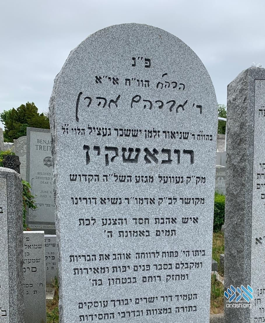 The matzeiva of R’ Avrohom Aaron HaLevi Rubashkin, unveiled today, has his name engraved as the Rebbe wrote it in his holy handwriting.