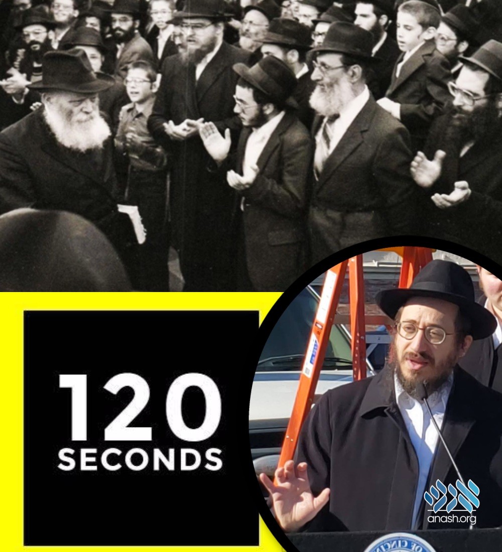 Initially, many of those sitting by the farbrengen said, “What can be accomplished in 120 seconds? Two minutes? Is that a present for the Rebbe?” Then, Rabbi Avtzon remembered an amazing story that happened with the Rebbe and his father, Rabbi Yosef Yitzchak Avtzon sheyichye.