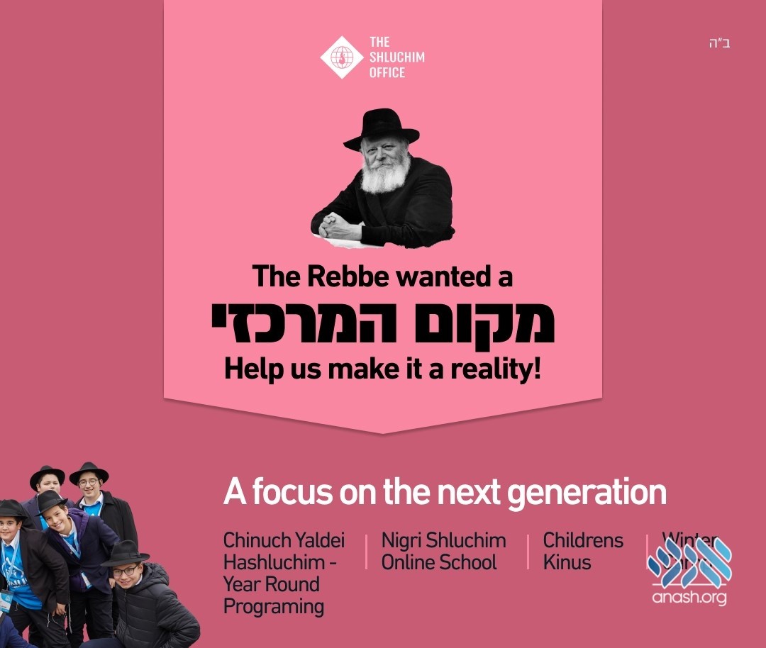 In 1987, the Rebbe’s directive was crystal clear: Establish a “Central Hub” for Shluchim, where their needs would be met with care and attention. Today, the Shluchim Office is hosting a fundraiser to cover their growing and expanding services, giving you the opportunity to provide for the needs of the Shluchim.