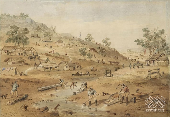 The earth opened its mouth and revealed its secrets, and the treasures of gold hidden deep within it near the town of Bathurst were uncovered in 1850. Since then, people from all corners of the earth have flocked there, filling their sacks with gold. Our Jewish brethren were also drawn by the allure of gold and treasure that all people desire, and they too came to seek gold. Commercial activity also grew throughout the country, for all these people needed bread, clothing, and houses to live in. Money was of no concern; gold was being thrown in the streets.