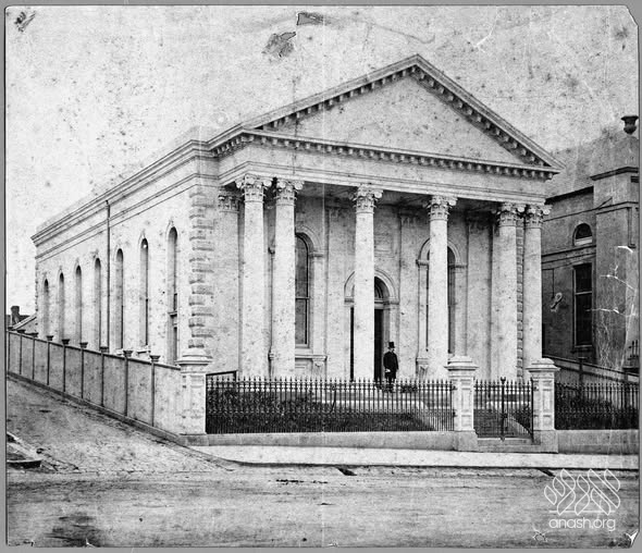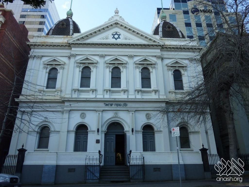Congregation Sheeris Yisrael—the Melbourne Hebrew Congregation—on 472 Bourke Street, 186. Built in 1847 and reconstructed in 1855, this was the first shul in Melbourne. The congregation moved in 1930 to Toorak Shul, where it remains until today. The original building on Bourke Street was destroyed, with only part of the façade remaining today.