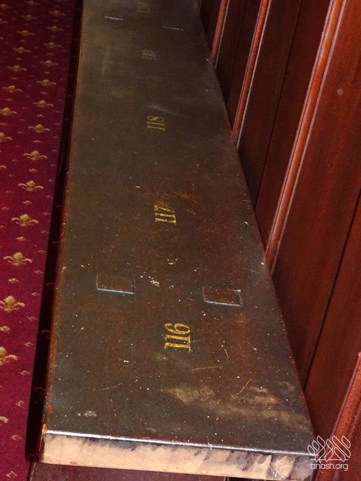 A hard bench in the back of the Hobart Synagogue, built for use by convicts who were brought to the synagogue under armed guard.