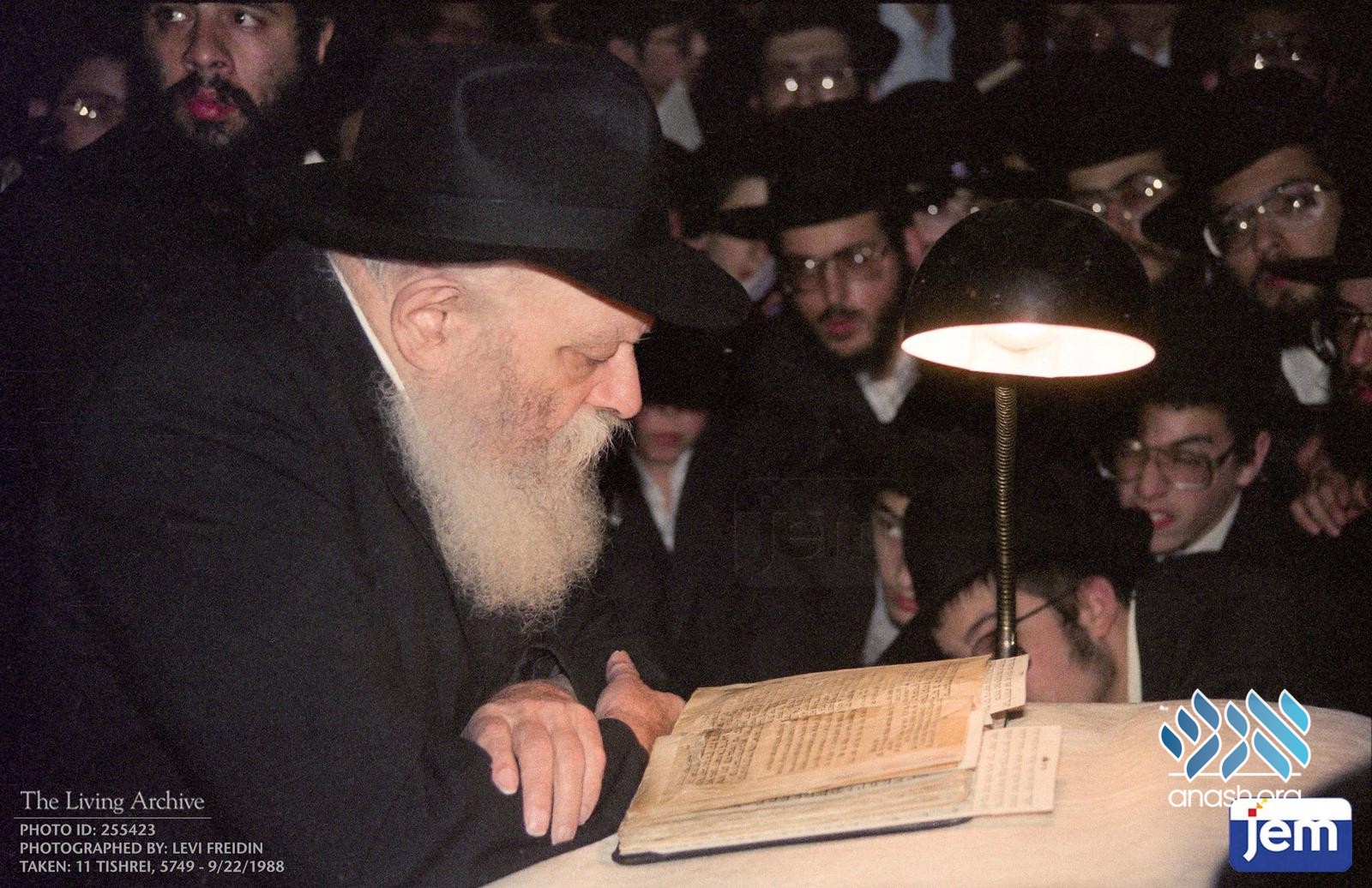 The Rebbe, reciting Kiddush Levana, on 11 Tishrei, 5749/1988.