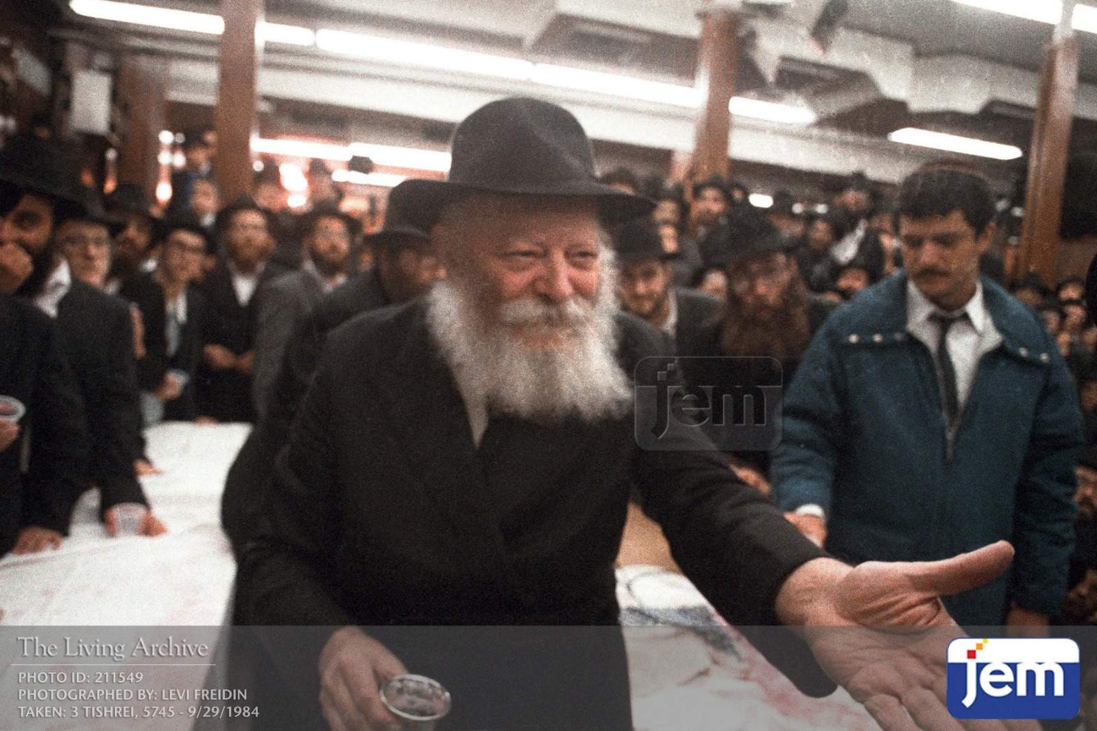 The Rebbe during Kos Shel Brochoh on Motzoei Shabbos Shuva, 5745.