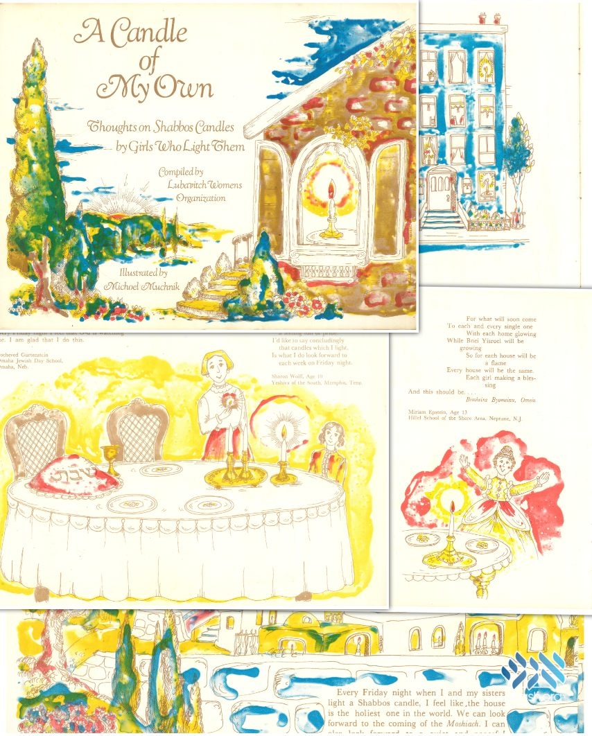 The 5737 album “A Candle of My Own” includes a sampling of the poems and compositions submitted by Jewish girls across the United States and Canada for the 5737 Composition Contest. It also included art by Lubavitcher artist Michoel Muchnik.