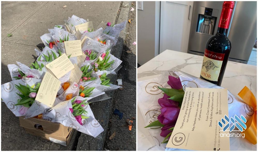 Shortly before Shabbos, each Crown Heights Hatzalah member and his wife was gifted with an exquisite bouquet of flowers and a hand-selected wine. Who was behind it, and how did it come about?
