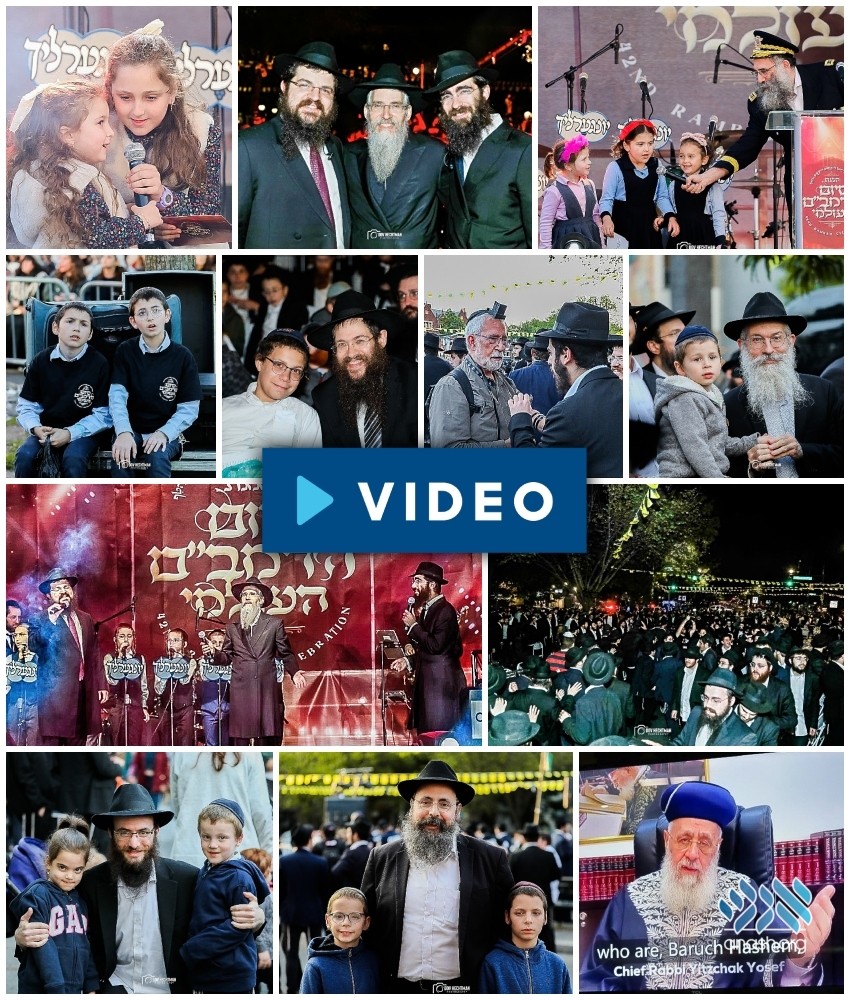 For the third year in a row, a grand event was held in front of 770 celebrating the Hakhel Siyum Horambam Haolomi, with prominent speakers, special video presentations, and renowned Jewish singers.