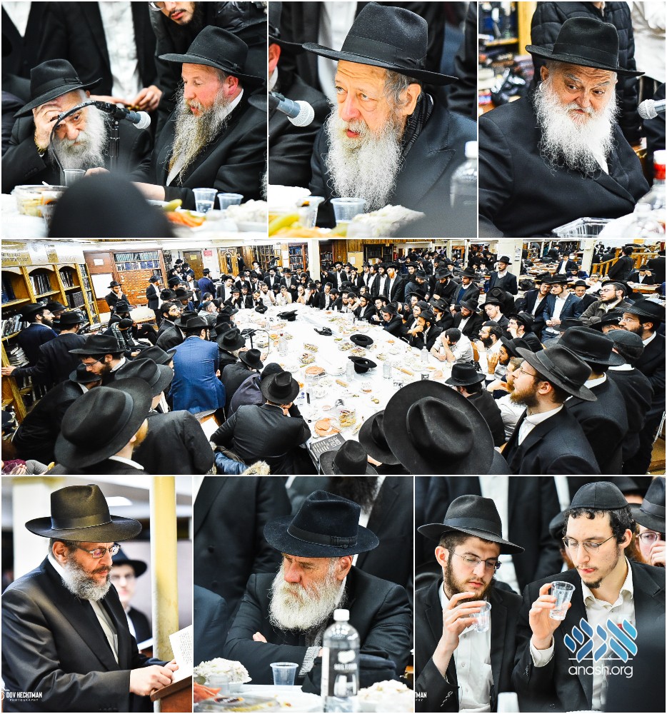 Joining the farbrengen was the hanhala of the 770 Yeshiva and a number of out-of-town shluchim, including Rabbi Yosef Yitzchok Aharonov, director of Tzach in Eretz Yisroel, and Rabbi Berel Mochkin, head shliach to Montreal.