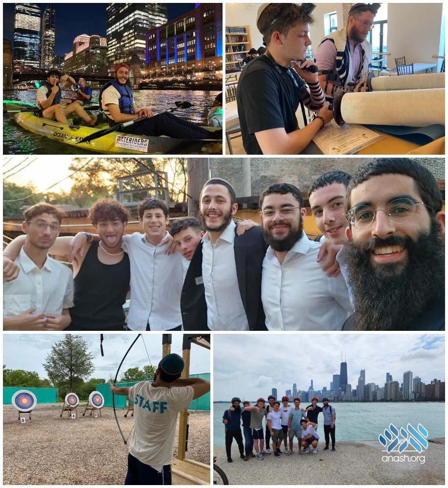 Some of the activities included archery, paintball, a trip to Six Flags, nighttime kayaking on the Chicago River, a professional soccer game, and an overnight camping in the woods. For completing the entire Tehillim on Shabbos mevorichim, the boys were treated to a Melave Malka at the high end Nuovo Italian restaurant.