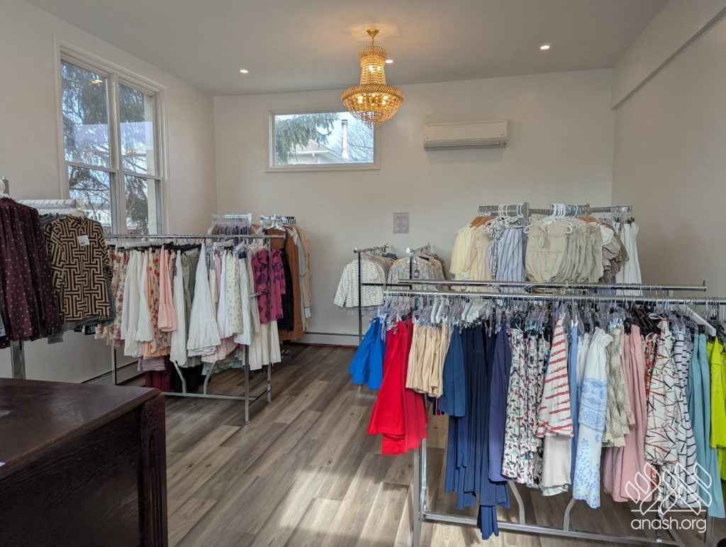 On the Sunday following Purim, the doors of the Shul opened to a steady flow of women from across the community. Racks were filled with skirts and dresses, while tables were lined with tops, tees, and children’s outfits. In total, over 1000 items were made available—each priced at just two dollars.