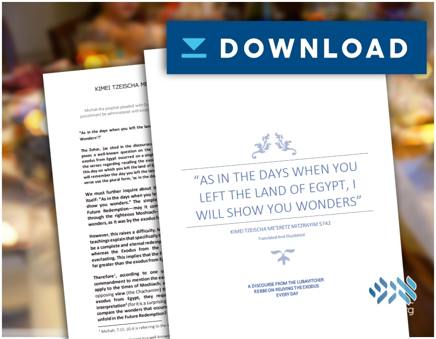This Maamar answers these questions and more, offering a powerful, relevant perspective on Yetzias Mitzrayim and its ongoing role in our lives.