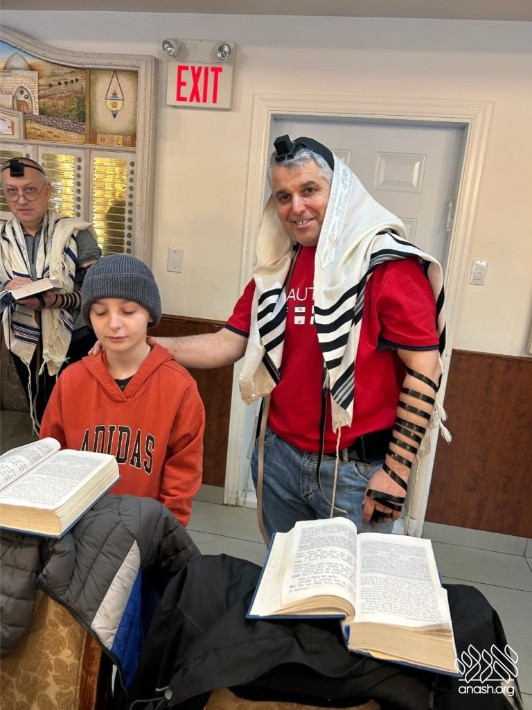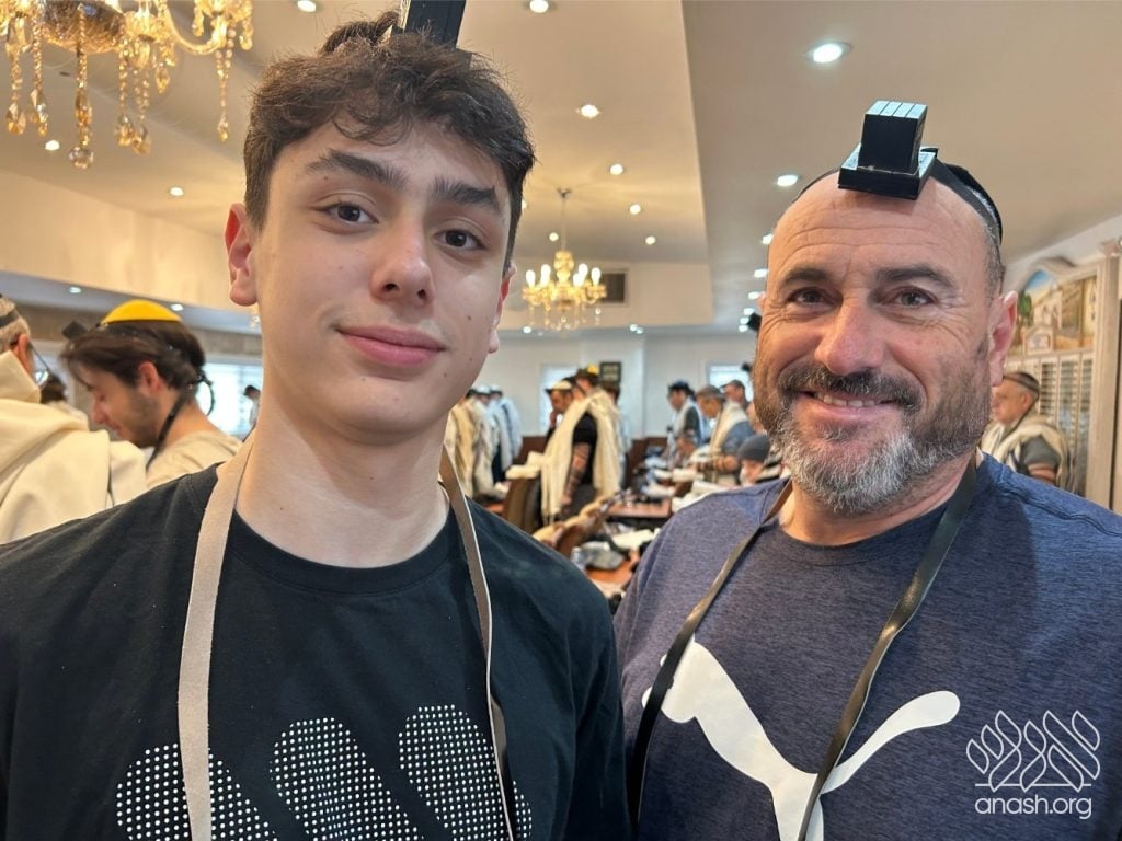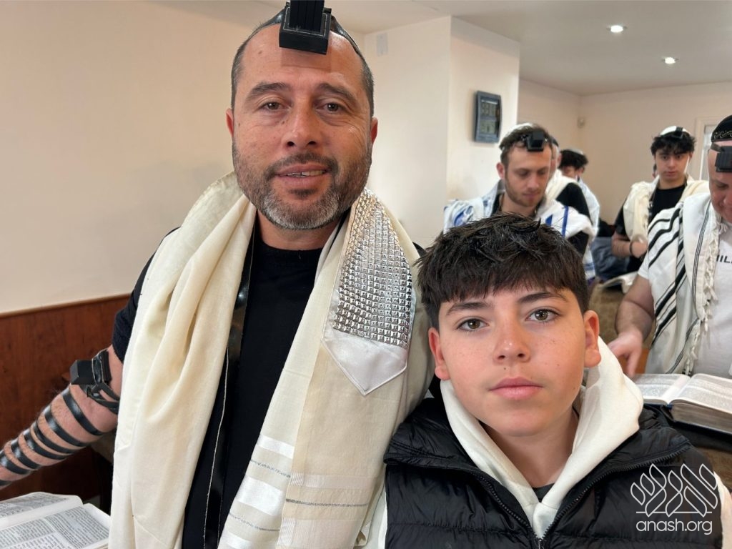 In honor of Yud Aleph Nisan, the birthday of the Rebbe, Chabad of Thornhill Woods, led by Shliach Rabbi Chaim Hildesheim, hosted a special Father-Son Tefillin and Breakfast event.