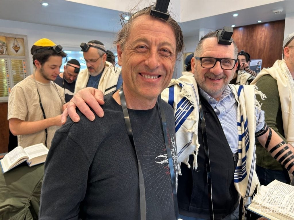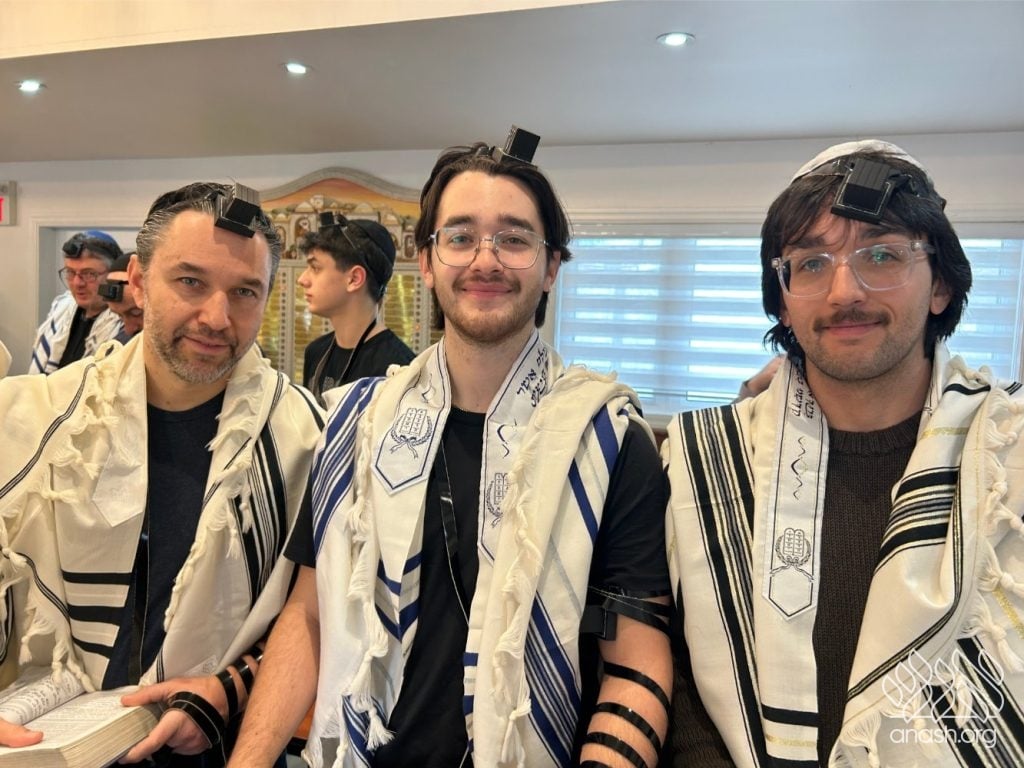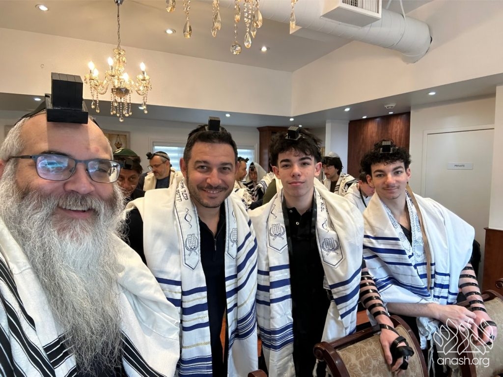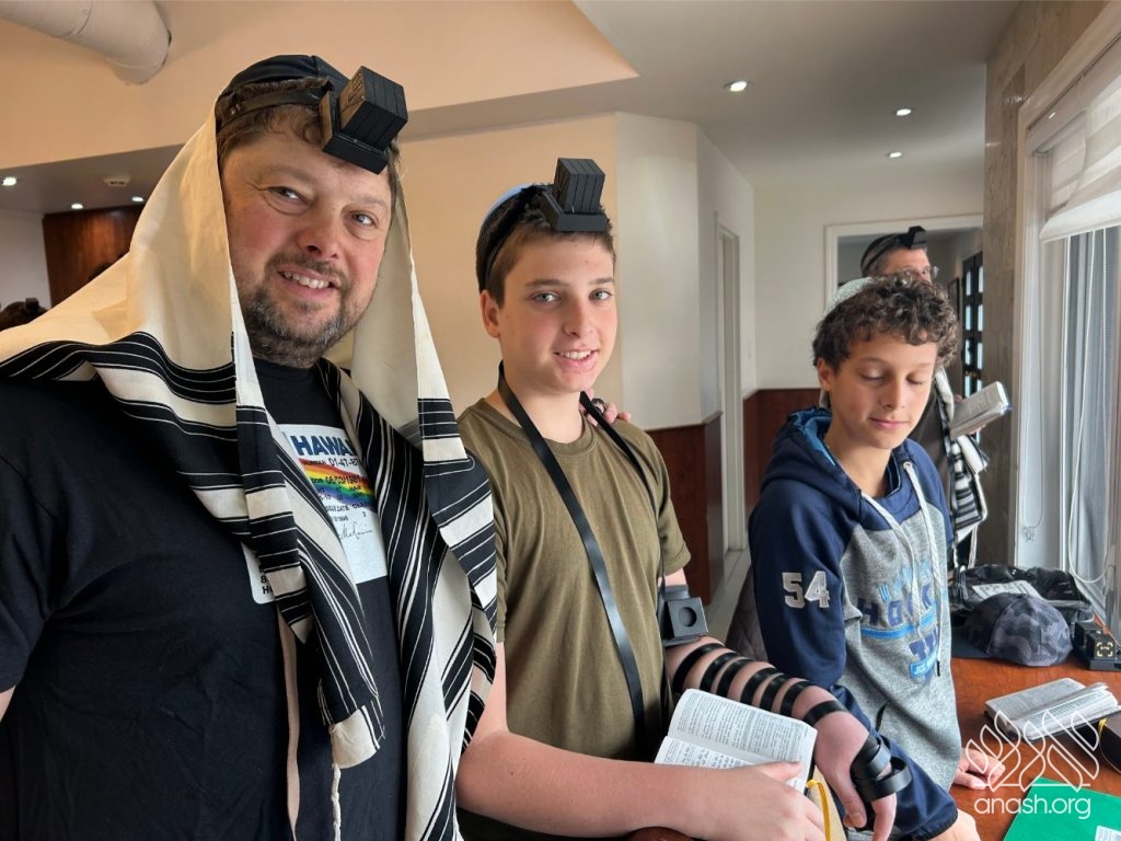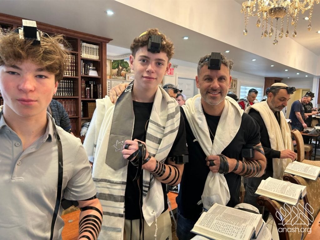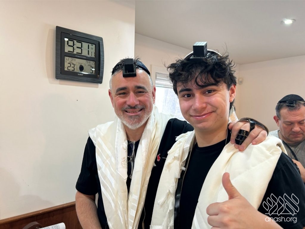 All fathers and sons donned Tefillin and davened Shachris together. The chazan was a past Bar Mitzvah club graduate who is now fully observant!