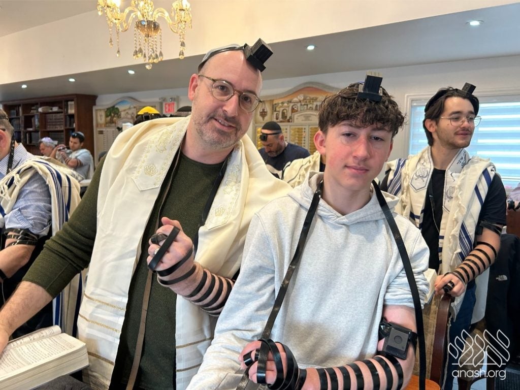 In honor of Yud Aleph Nisan, the birthday of the Rebbe, Chabad of Thornhill Woods, led by shliach Rabbi Chaim Hildesheim, hosted a special Father-Son Tefillin and Breakfast event.