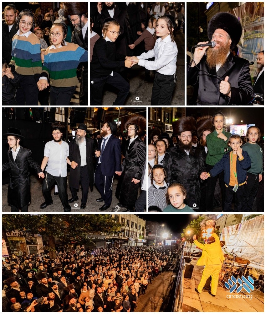 Thousands joined together this Monday night for a grand Simchas Beis Hashoeva celebration in Borough Park arranged by shliach Rabbi Aron Ginsberg.