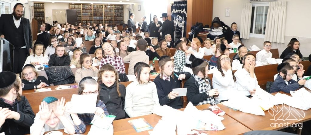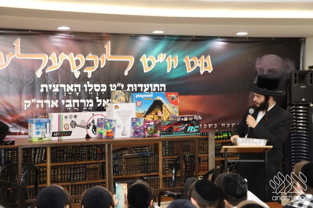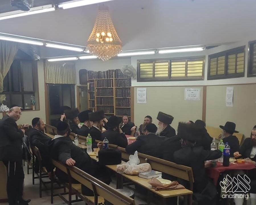 Farbrengens took place throughout Eretz Yisroel in Mayonei Yisroel shuls, attended by thousands more, including special gatherings for bochurim, American bochurim, and kollel yungerlait.