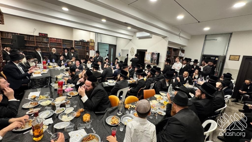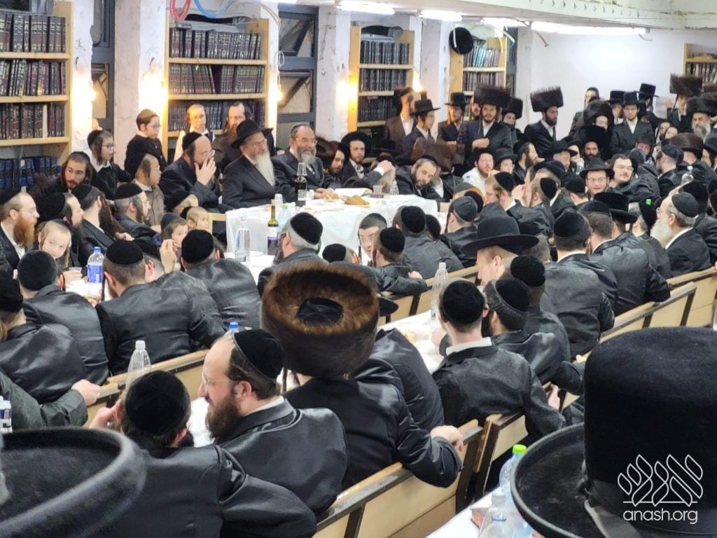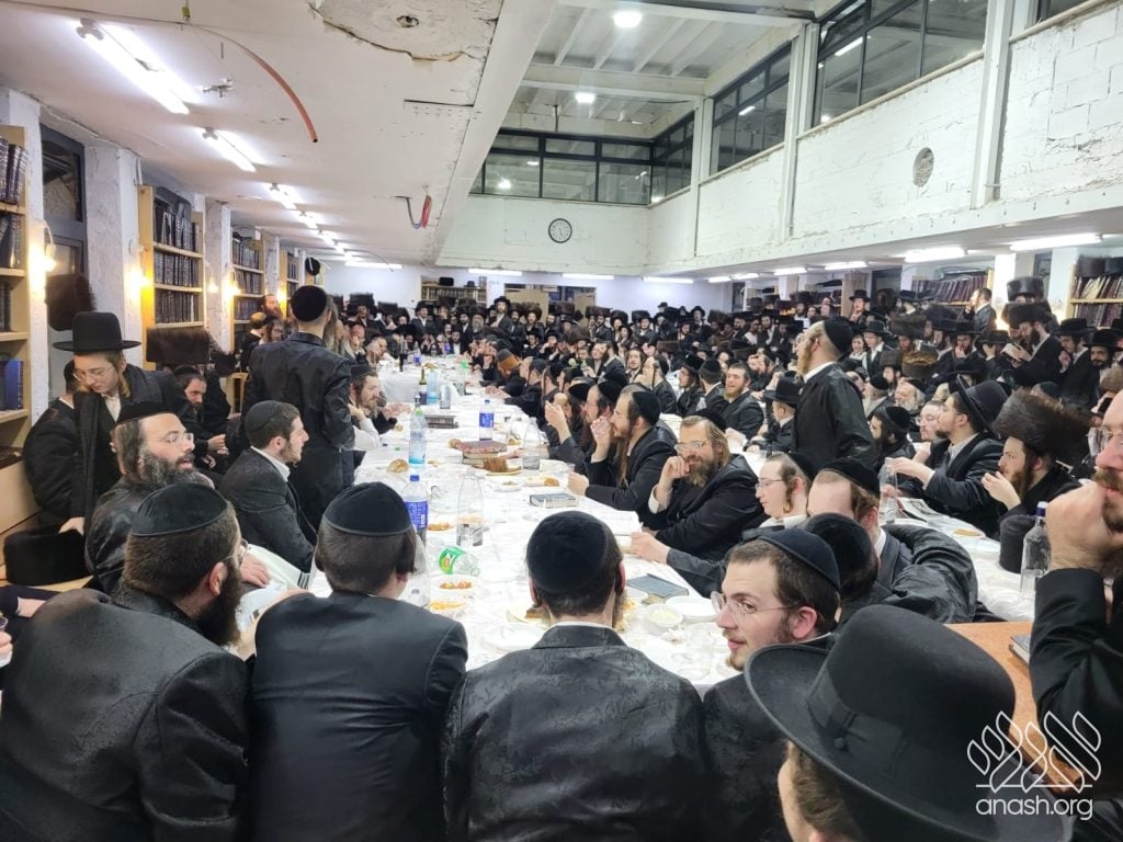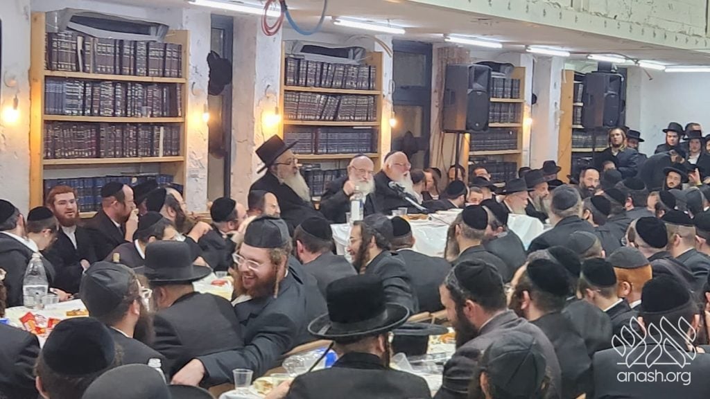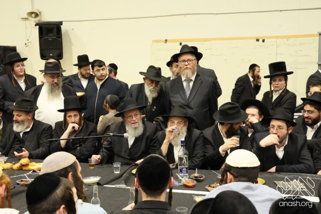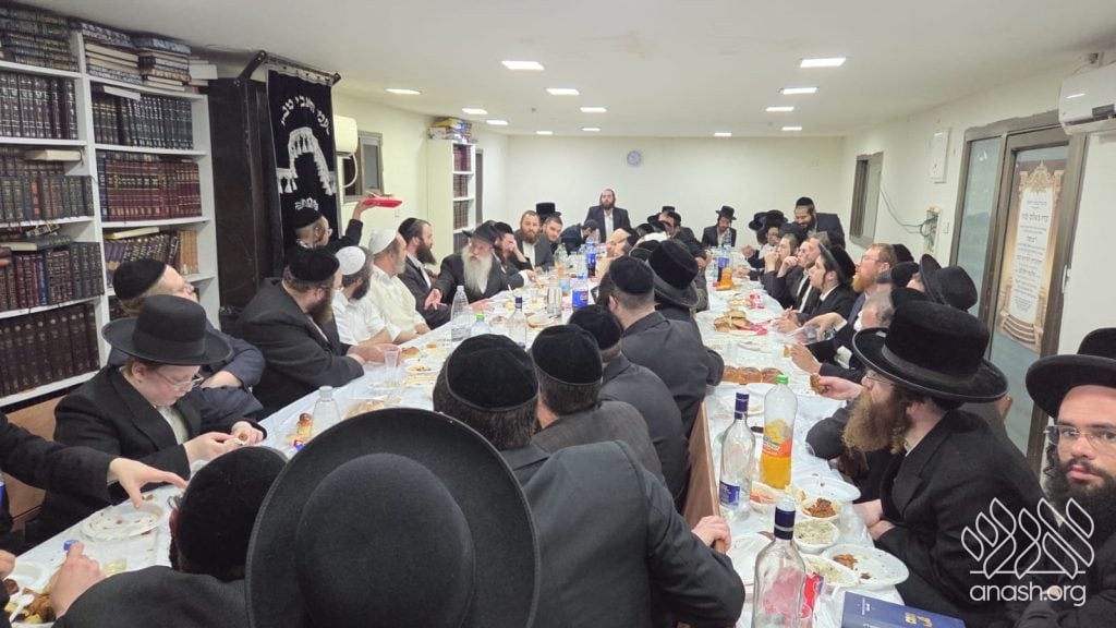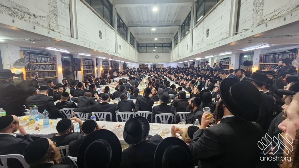 The central farbrengen and grand seuda took place on Tuesday night in Yerushalayim, led by mashpia Rabbi Zalman Gopin of Kfar Chabad. Thousands of chassidim from various chasidus groups attended, with the farbrengen continuing into the early hours of the morning.