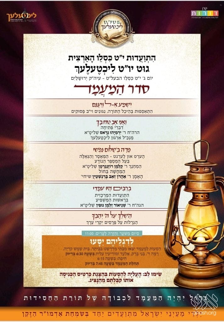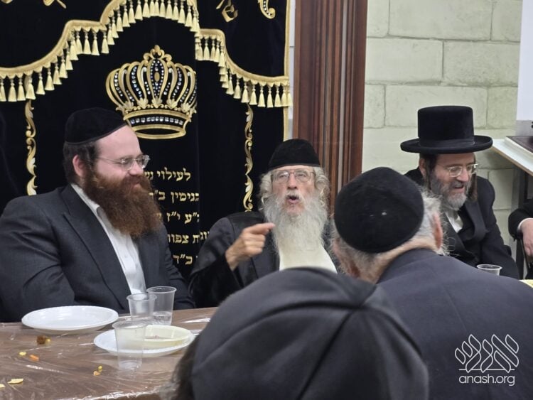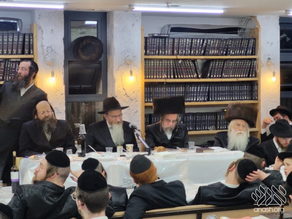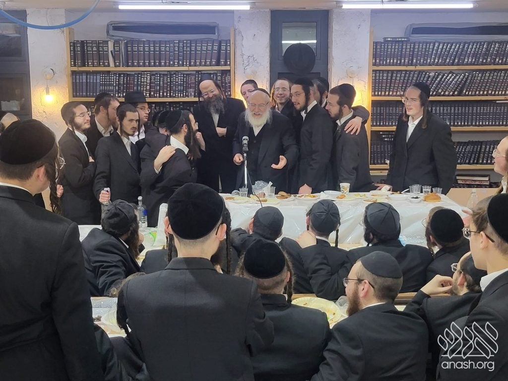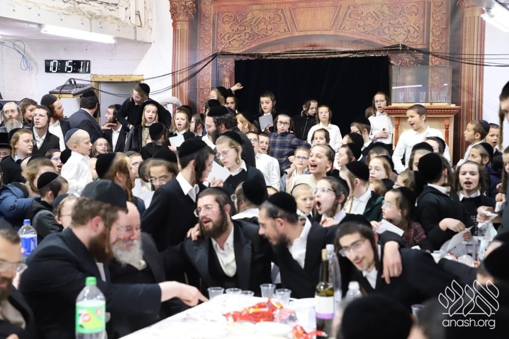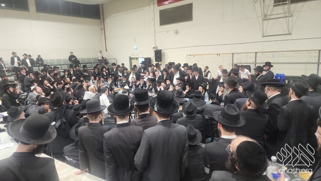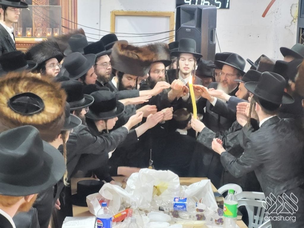 The central farbrengen and grand seuda took place on Tuesday night in Yerushalayim, led by mashpia Rabbi Zalman Gopin of Kfar Chabad. Thousands of chassidim from various chasidus groups attended, with the farbrengen continuing into the early hours of the morning.