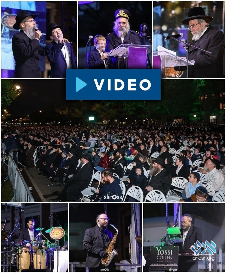 In a monumental celebration, chassidim gathered on Eastern Parkway to celebrate the Siyum Harambam with words of inspiration and soul-stirring Niggunim with singer Avraham Fried.