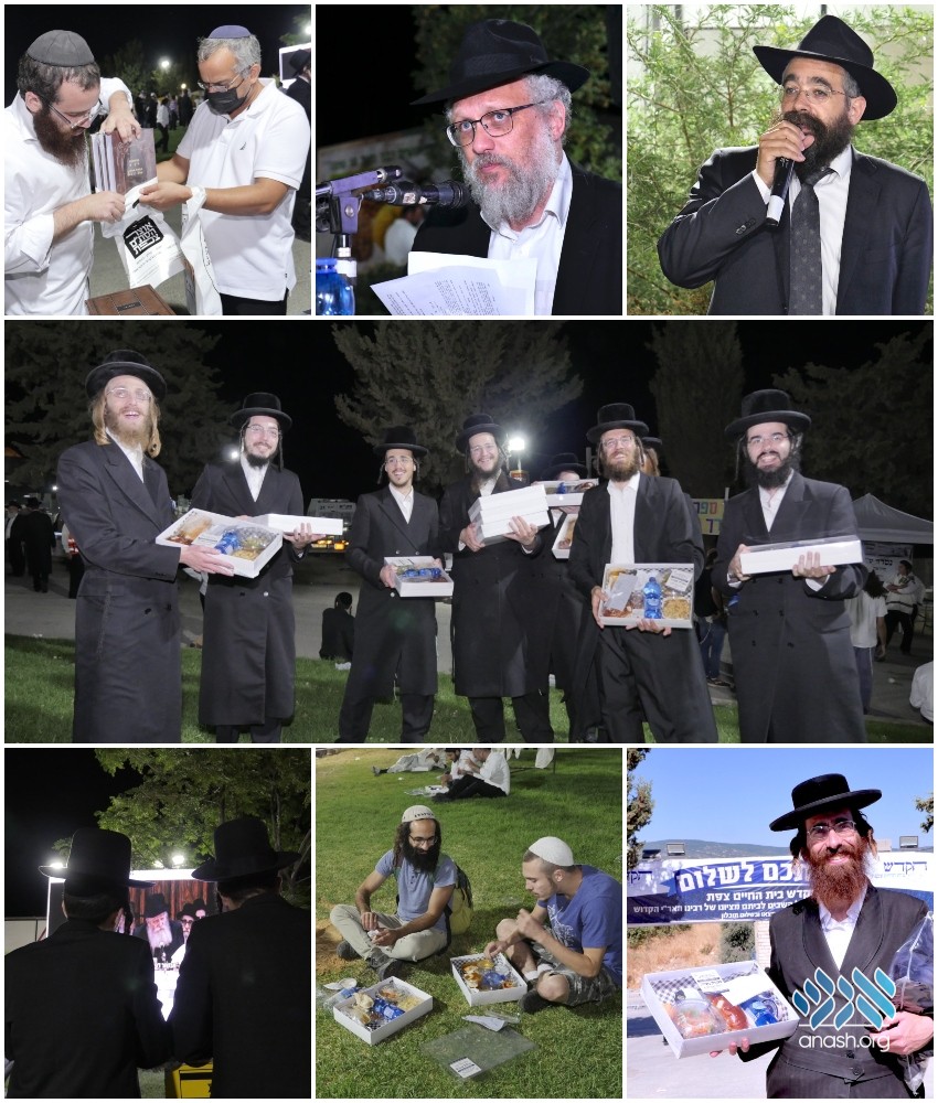 Additionally, a tent was specially set aside for davening, and another for learning, where Rabbis Asi Spiegel and Menachem Mintzberg delivered shiurim in the Torah of the Arizal.