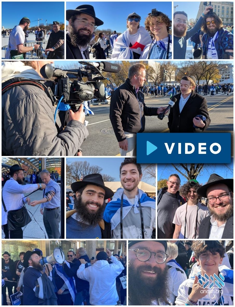 Dozens of chassidim from NY and shluchim from across the country arrived in Washington DC where they manned tens of stands for tefillin and spread Yiddishkeit among the nearly 300,000 attending the rally.