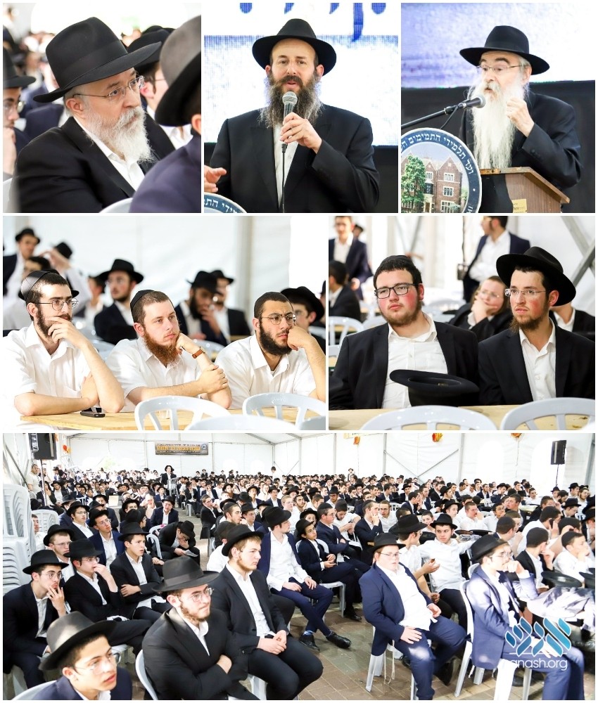Before Shabbos, bochurim gathered in the large tent erected for this occasion to hear shiurim in the Rebbe’s sichos on the theme of Hiskashrus to the Rebbe.