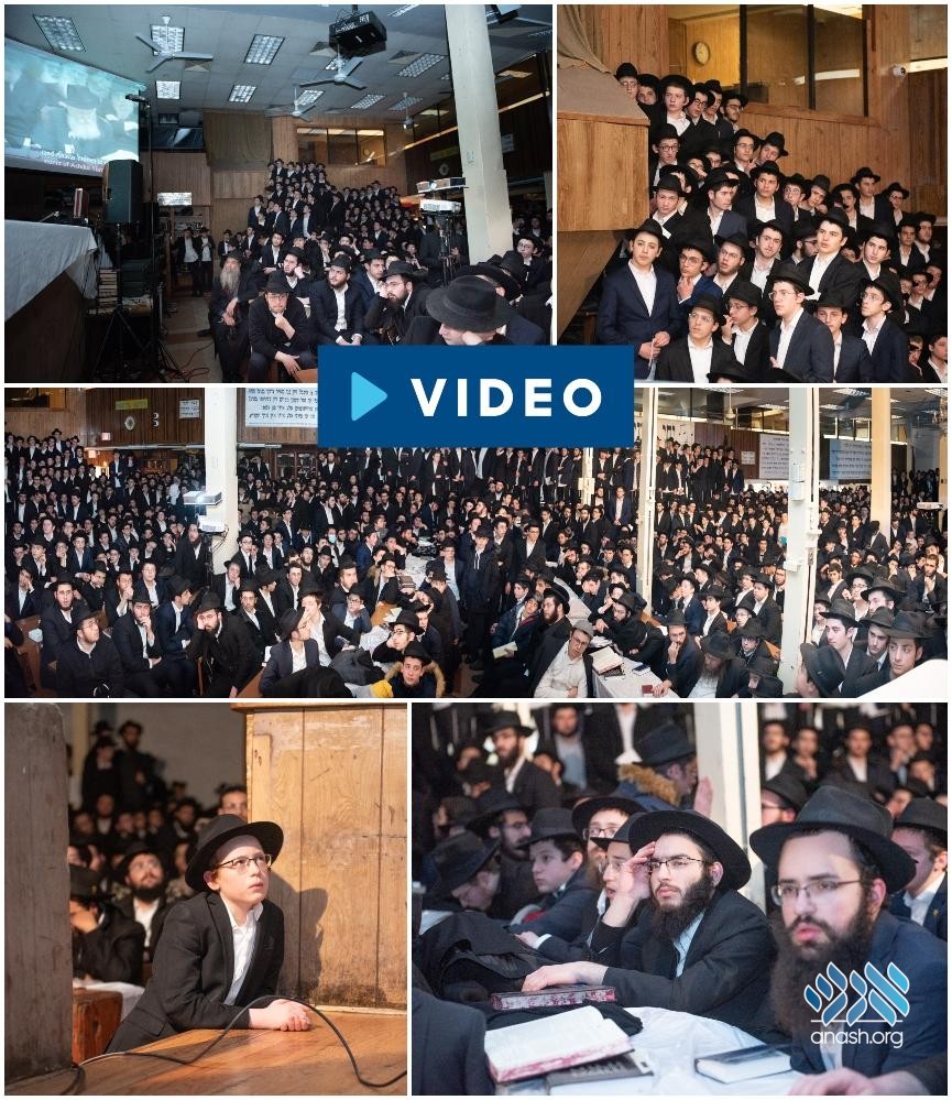 Thousands of bochurim gathered in 770 and online for an hour-long video of the Rebbe’s Sichos and Nigginim connected to Mivtzoim the Rebbe instituted throughout Dor Hashvei.