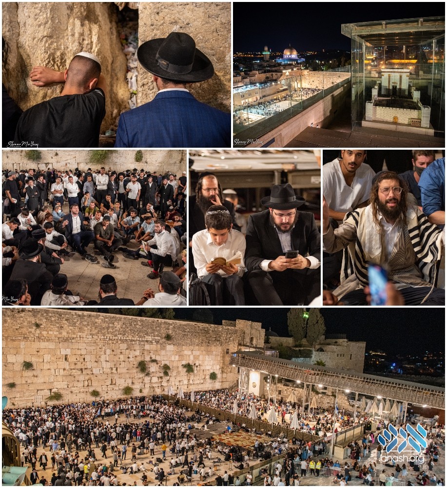 Thousands of Yidden from all walks of life gathered at the Kosel on Motzei Shabbos, the start of Tisha B’av, to read Eicha and mourn the destruction of the two Batei Mikdash and daven for an end to the 1,953 years of bitter golus.