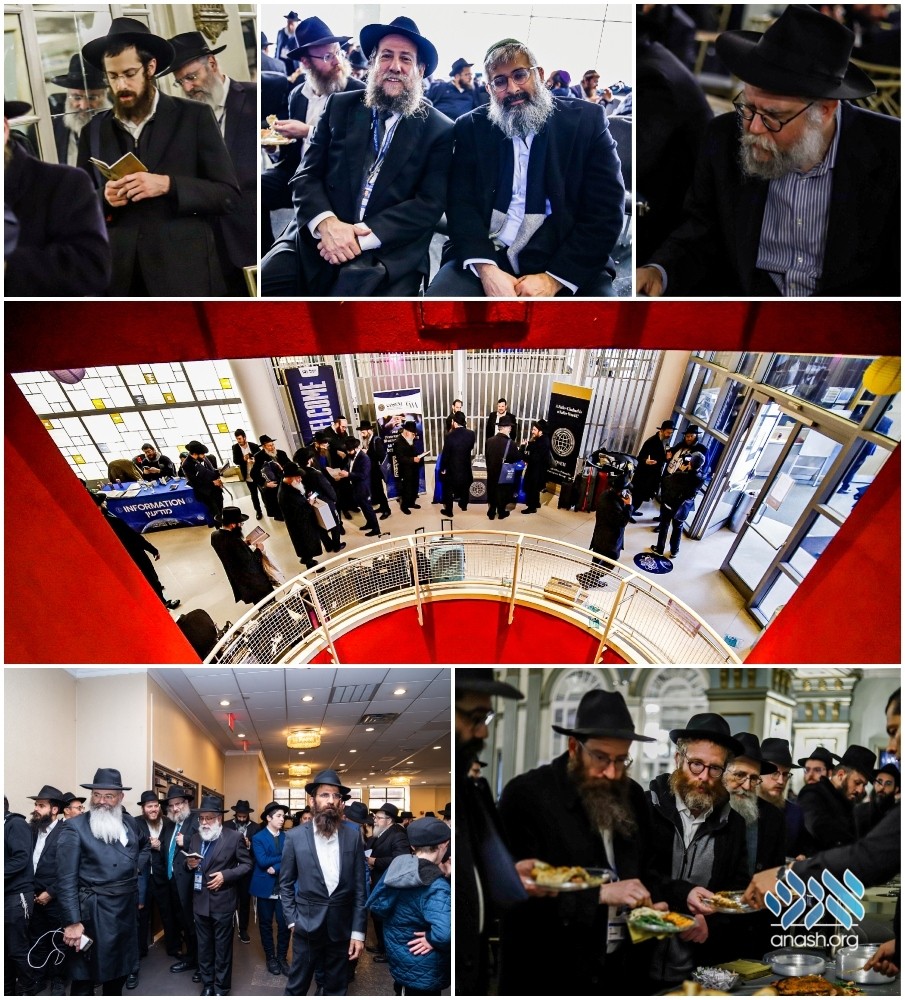 After the first session of Kinus workshops, shluchim gathered for Mincha, followed by lunch, which quickly turned into tens of mini farbrengens.