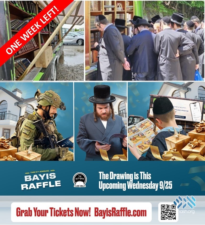 Only one week remains to purchase tickets for the Bayis Raffle, offering extraordinary prizes to support Hafotzas Hamayanos.
