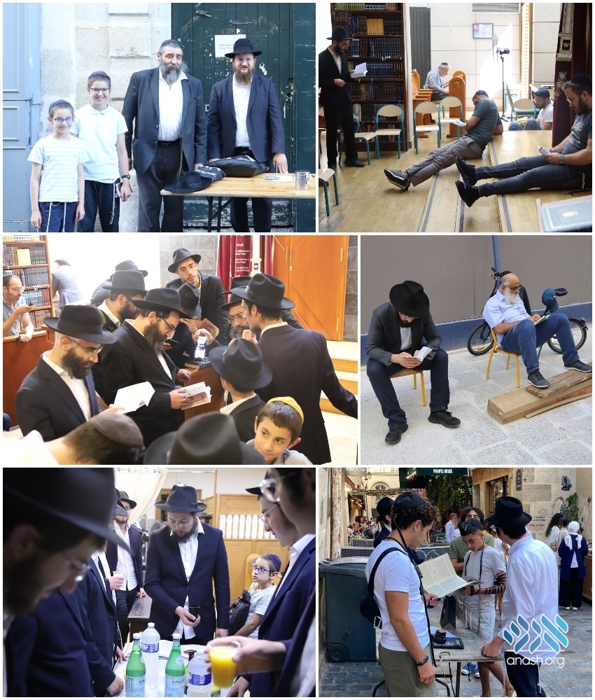 Lubavitchers gathered in Bais Chaya Mushka and the shul at 17 Rue des Rosiers in the Pletzel, Paris’ Jewish Quarter, known as ‘the Rebbe’s Shul’ to mark Tisha B’av and mourn the destruction of the Batei Mikdash.