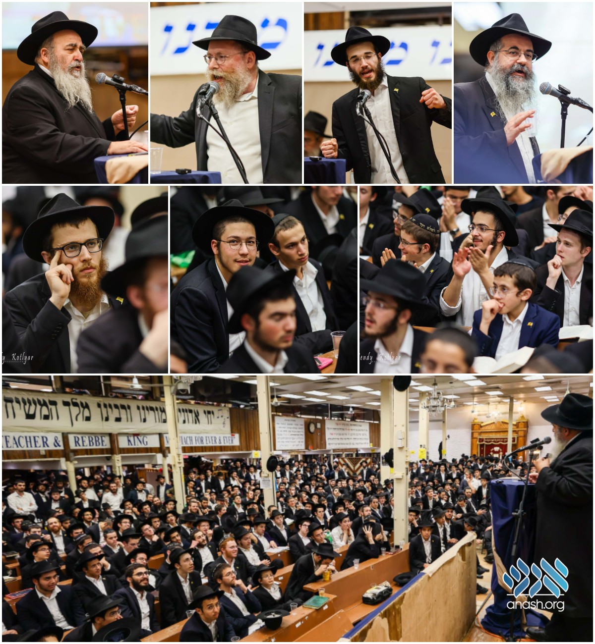Hundreds of bochurim who traveled to Crown Heights for the Tishrei Yomim Tovim gathered in 770 for a Bruchim HaBoim event, where they heard words of inspiration from multiple speakers.