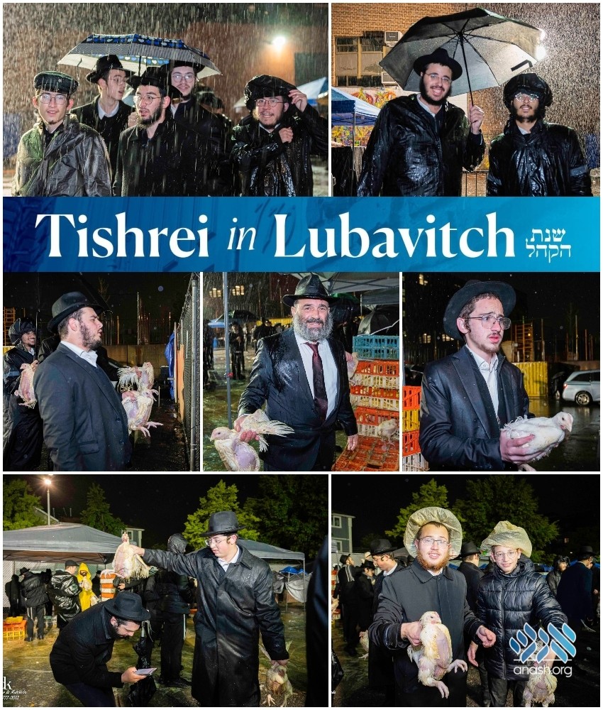 Thousands of locals and guests performed the minhag of kaparos late Monday night, Erev Yom Kippur, even as a non-stop downpour drenched the streets.