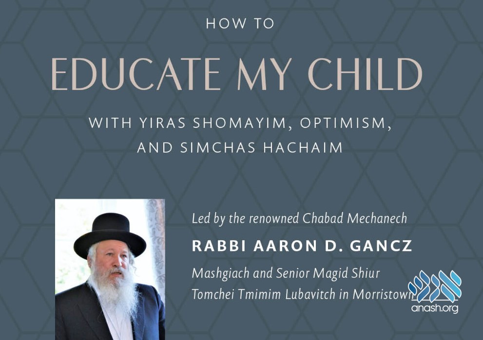 This year’s topic is “How to Raise My Child with Yiras Shomayim, Optimism and Simchas Hachaim,” and will be delivered by the renowned Chabad mechanech Rabbi Aharon D. Gancz, senior magid shiur at the Tomchei Temimim Yeshiva in Morristown.