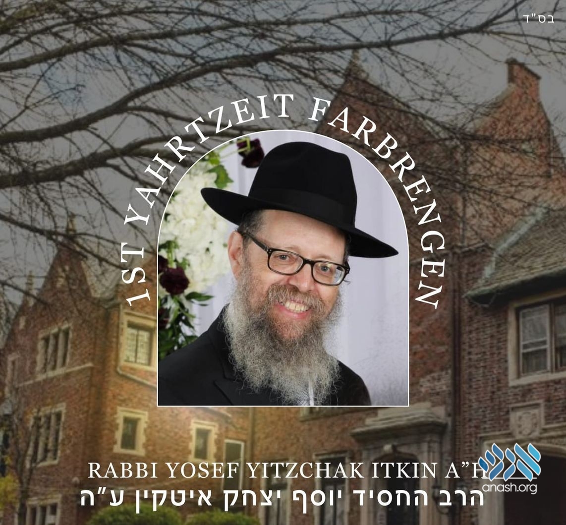 The Itkin family invites you to join them this Monday evening to mark the first yartzeit of Rabbi Yosef Yitzchak ben Reb Meir Itkin A”H.