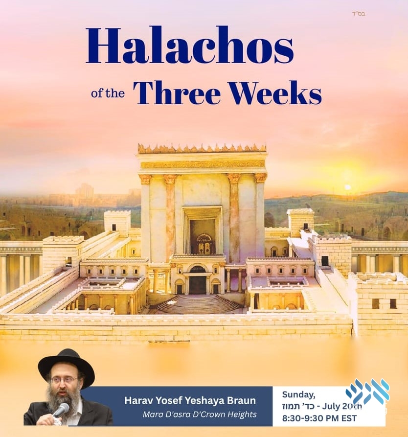Tonight 8:30-9:30 PM ET: A special shiur on the halachos and minhagim of the Three Weeks will be delivered by Harav Yosef Y. Braun. Join live on Anash.org.