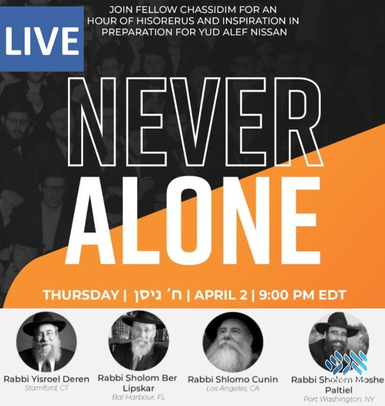 Tonight 9pm EST: In preparation for Yud Alef Nissan, join Chassidim for an hour of Hisorerus and inspiration on how we can implement the light of Yud Alef Nissan into these difficult times; including a special musical presentation.