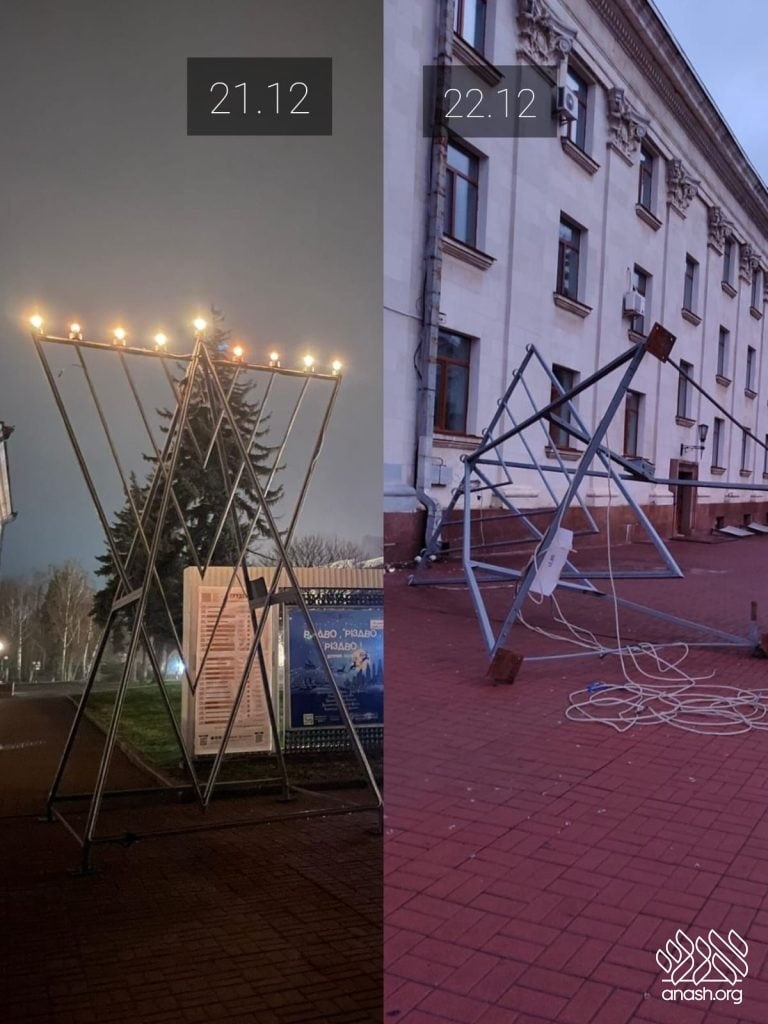 The city’s Shliach, Rabbi Yisroel Silverstein, is in continuous contact with local government officials following the incident. He is working alongside Rabbi David Regvoy who led the lighting ceremonies on the ground throughout Hanukkah. The Community Security and Emergency Center of Ukraine (CWA) is managing the response to this serious incident with the authorities.