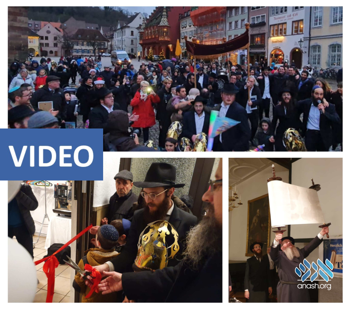 Rabbi Yakov and Chava Gitler, shluchim to Freiburg, Germany, celebrated two special milestones today, Sunday: the inauguration of their new community center as well as a momentous Hachnosas Sefer Torah.