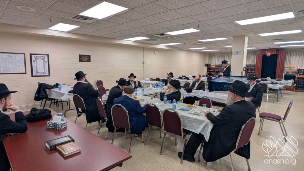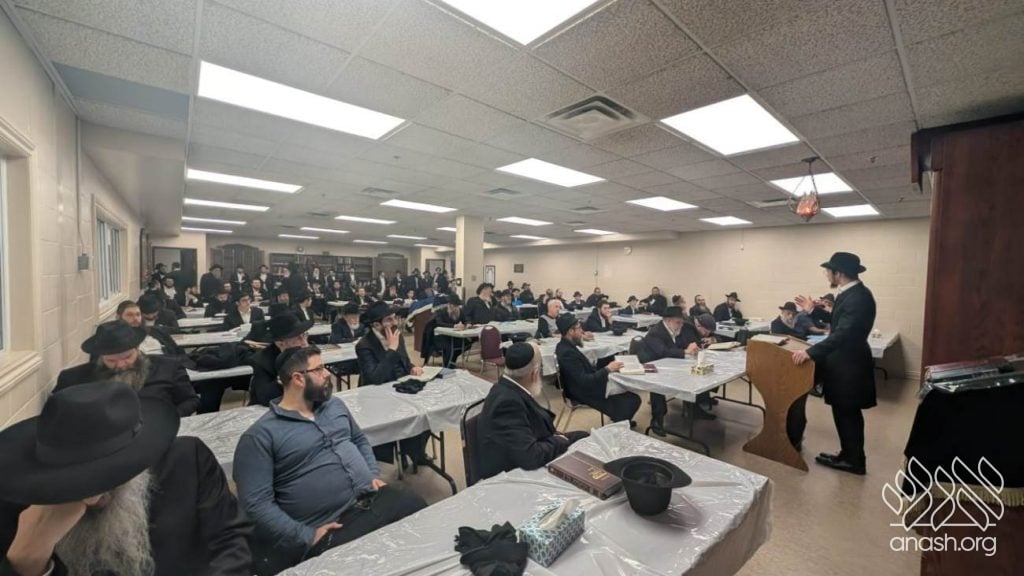 Dozens of anash and bochurim in Toronto, joined by many guests visiting for Pesach, gathered for a grand Kinnus Torah on Monday, the third day of Chol HaMoed in keeping with the Rebbe’s directive to organize Kinnusei Torah throughout the days of Chol HaMoed Pesach.