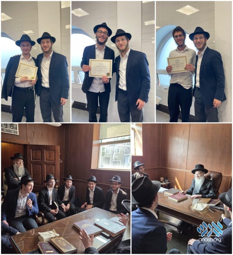 Six bochurim from Toronto Mesivta mastered the entire Maseches Kesubos Baal Peh B’bas Achas, and were farhered by local rabbonim, Harav Yaakov Kaufman, of the Bathurst–Lawrence community, and Harav Shie Fuhrer of the Bobov community, who were amazed by the bochurim’s knowledge of the mesechta.