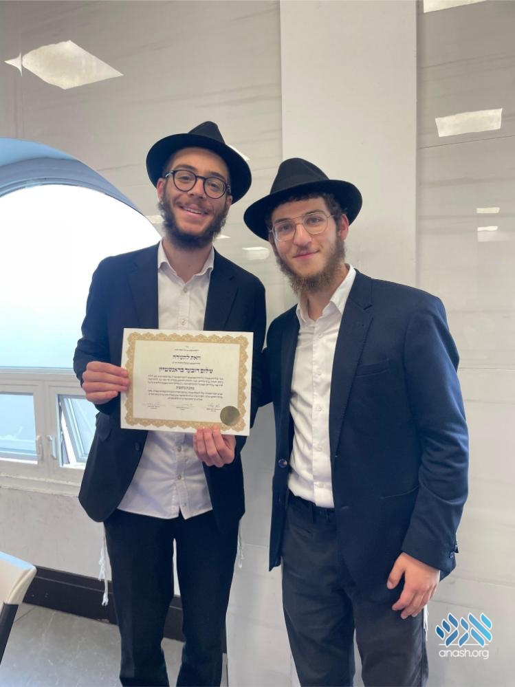 This remarkable accomplishment was guided by Hatomim Gilad Yosef Gerschman, Shliach and head of Mivtza Torah for Shiur Gimmel. Gilad dedicated countless hours to periodically farhering the bochurim, and he himself mastered the entire Maseches.
